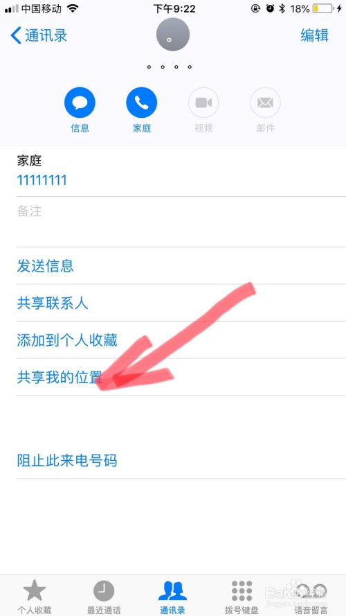 1.打开手机通信录,找到需要共享位置信息的对象,点击进入打德律风界面。