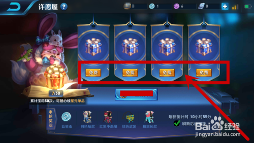 在许愿屋中,点击开启许愿宝盒(每日一次免费),如图所示