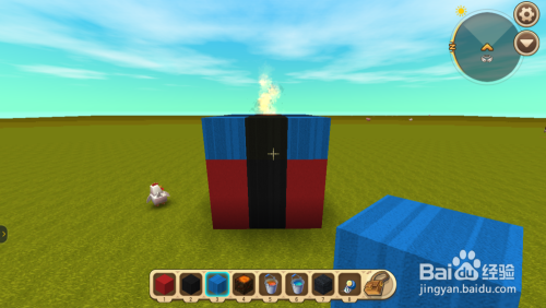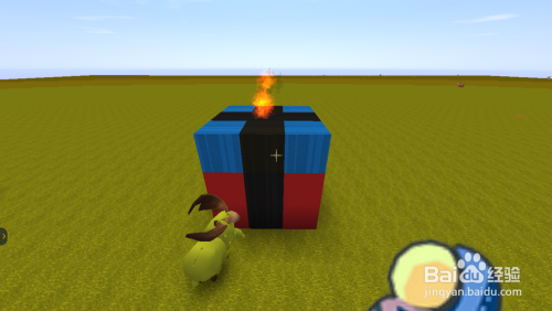 硫磺晶沙遇岩浆有喷火的结果,最后我们在岩浆上方放一块黑色毛料,空投就做好了。