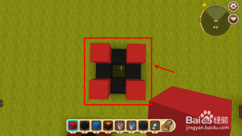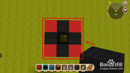 然后利用4块黑色毛料将步调1红色毛料之间的裂缝(中间除外)填充起来。
