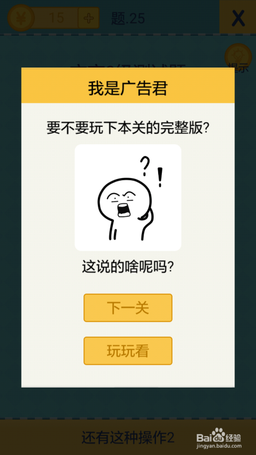 第25关点击不要两个字,在弹出来的窗口上点击下一关就过关了。