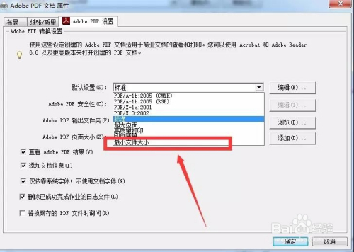 1、 若是你手头有Adobe的话,可以直接在Adobe中打开PDF文档,随后单击文件——打印——打印机名称——选Adobe PDF——点属性——Adobe PDF设置——默认设置——选最小文件大小——确定”即可压缩PDF文档大小。