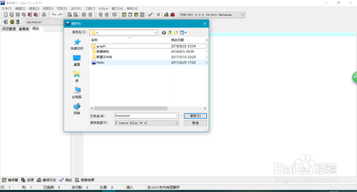 在新建立的文件中,首先点击菜单栏中的“文件-另存为”,要注重的是必然要保留为.c格局,默认为c++格局