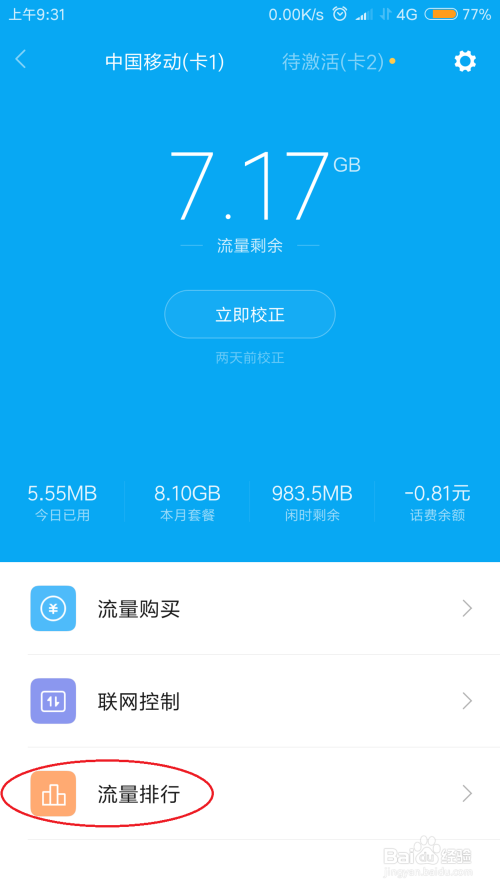首先我们得找出手机里的软件我的流量从谁哪儿溜走了几多,然后对其进行操作。我们此刻以小米手机为例找一下祸首祸首,打开手机的平安中间-->流量残剩-->流量排行-->点击上边的当天流量,然后选择当月流量。然后这个月的流量排行就显示出来喽,然跋文住我们需要对其操作的软件名称。