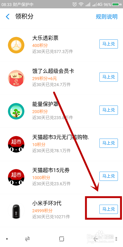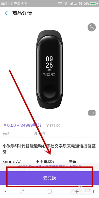 在页面上滑,找到“小米手环3代”,点击“顿时兑”