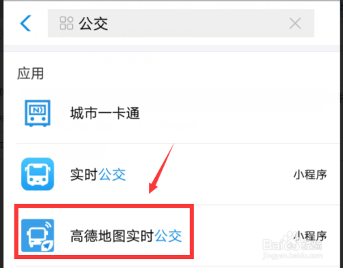 步调三:搜刮出来【高德地图及时公交】,点击进入,操作图片如下。,