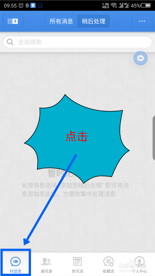 打开软件后,点击底部的对话流。如图所示
