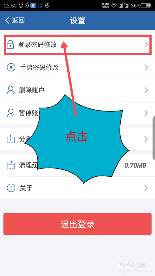 在设置界面最上面就是点窜密码选项,点击登录密码点窜。如图所示