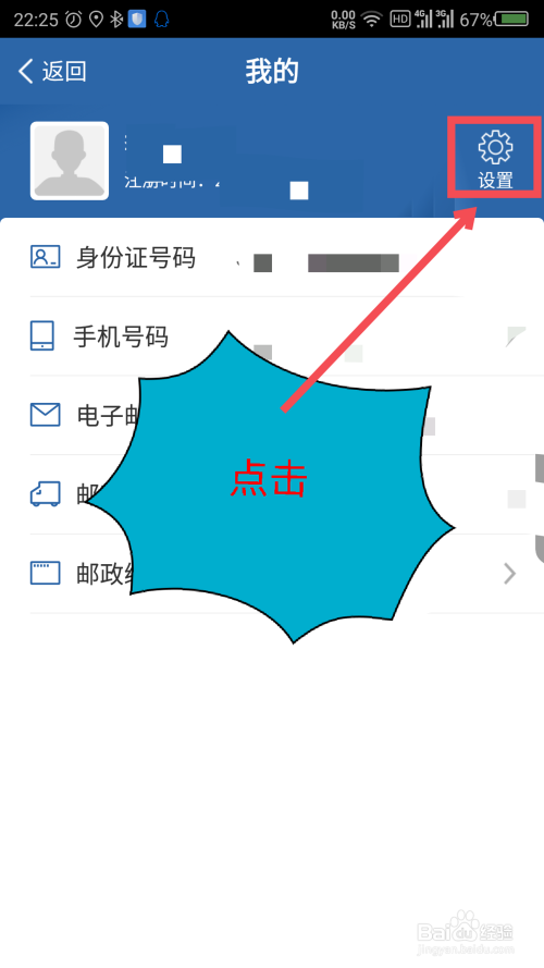 打开我的小我界面后,点击顶部的设置。如图所示