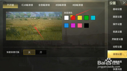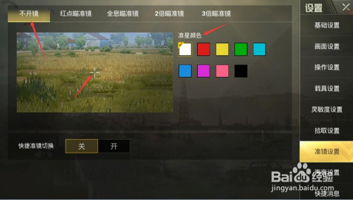 选择不开镜设置准星颜色;