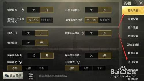设置中选择准镜设置;