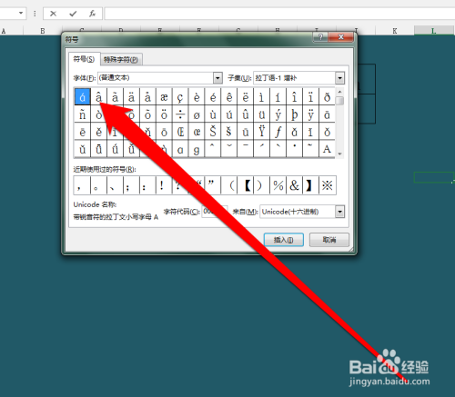 在符号界面中,选择拉丁语扩充A符号。