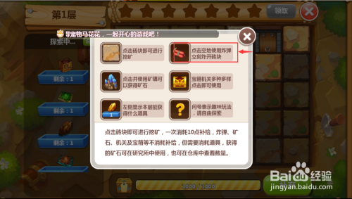 点击矿洞,进入到矿洞中,点击砖块就可以进行挖矿了;