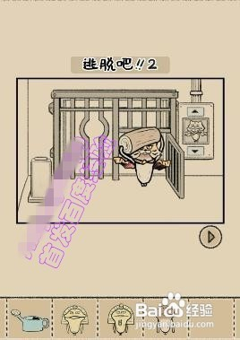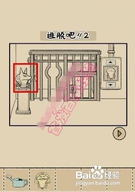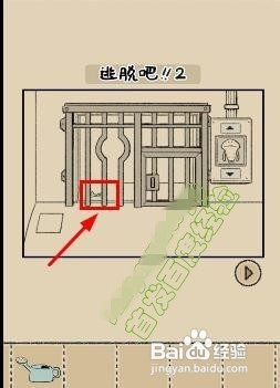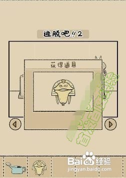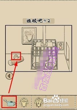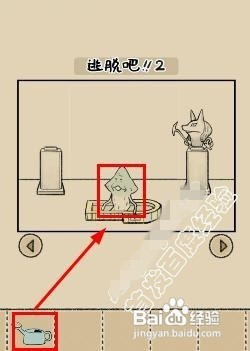 最左侧场景中(场景三),点击打开“电梯”,获取水壶。