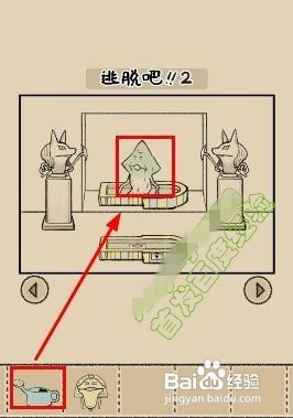 将获取得的雕像道具,放参加景二中左侧的石蹲上,可以开启暗门,看到第二个盒子。