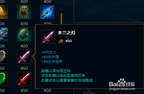 因为卢锡安前期比力强势,所以在LOL8.17版本卢锡安的出门装带常规的多兰剑来增添进犯力,更有利于前期打出优势。