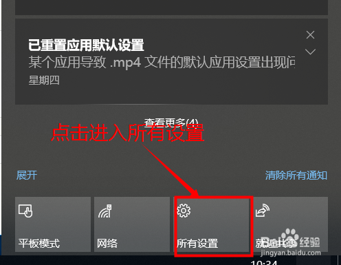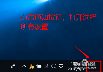 操作步调一:win10操作系统起头菜设置单样式,首先点击右下角的通知按钮,点击所有设置,操作图片如下