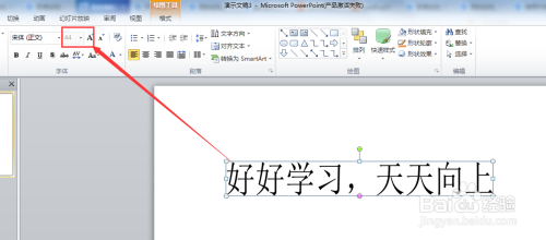 选择插入->文本框->横排文本框,输入文字:好勤学习,天天标的目的上,并调整字体格局