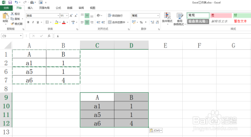 此时我们若是复制A1:B7区域粘贴会将埋没内容一路复制。若不想复制埋没的内容,首先框选A1:B7区域。