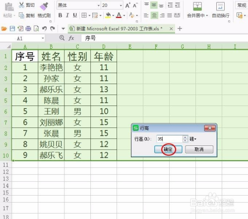 第八步:选中单位格的行,单击鼠标右键,选择“行高”,对表格的行高进行设置。