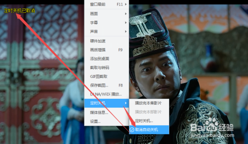 然后可以按照现实需要选择,如选择为 播放完本集影片,选择好之后,在左上角会弹出提醒,提醒多久关机。