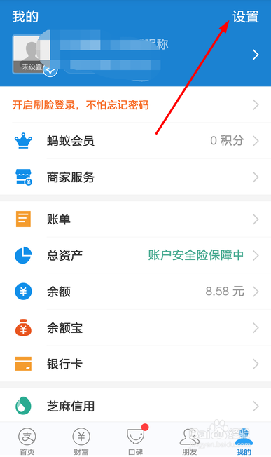 以上都有确认无误时,打开付出宝 页面,在底部五年夜菜单中找到[我]打开