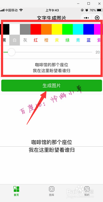 在输入框中输入文字,设置底色为白、字体颜色为黑,字体大小也可以设置,下方可以预览,完当作今后我们点击“生当作图片”。