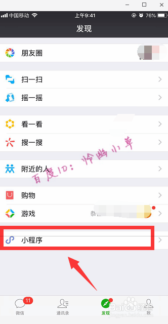 打开微信,点开“发现”,并选择“小法式”。