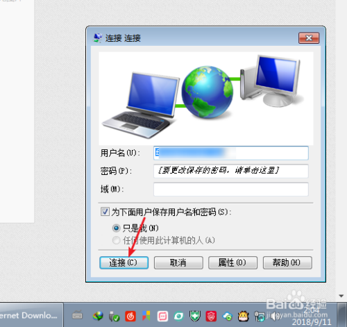 输入办事器ip,输入密码账号,不要健忘把记住密码勾上。