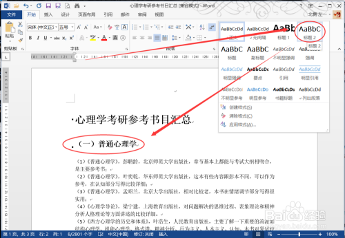 选择第二级题目,进入【起头】-【样式】,点击该区域内标的目的下的小三角。