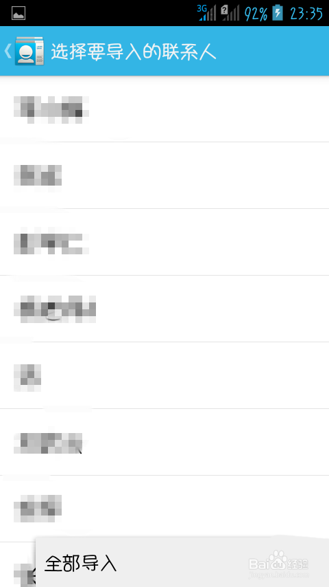 选择单个要导入的联系人信息。或者点击设置键全数导入,之后就可以在手机联系人里看到你导入的联系人信息了。