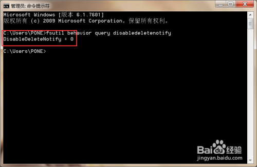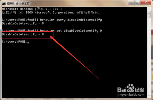 接下来,我们就会看到号令提醒符给我们返回的法式值,若是返回的法式值显示为0,那么我们已经当作功开启TRIM功能啦。