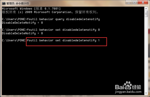 接下来,法式会给我们同样一个返回值,当看到返回值为1时,就意味着TRIM功能已经被当作功封闭啦。