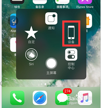 点击虚拟home键,在呈现的图标中点击【设备】图标,如图所示!