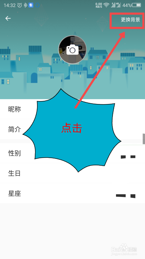 打开小我信息界面后,点击右上角的改换布景选项。如图所示
