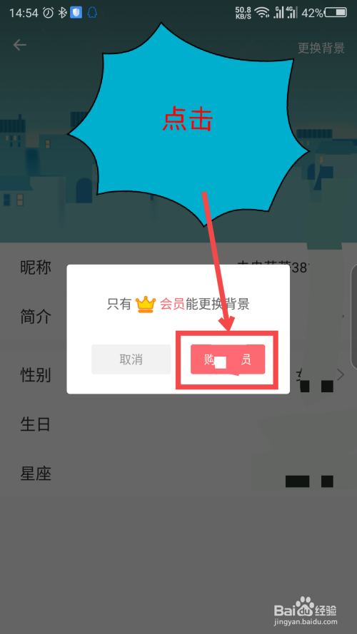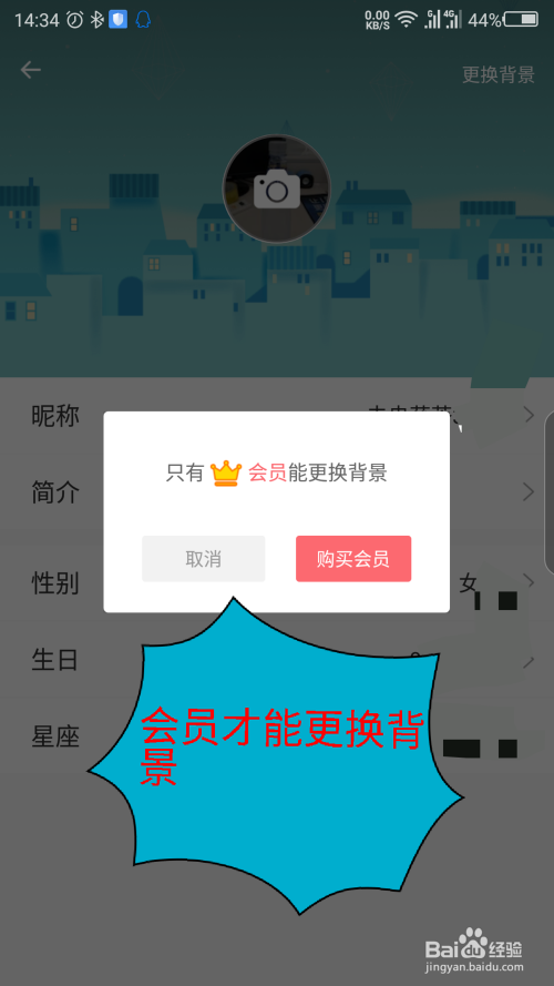 弹出一个提醒窗口,改换布景是会员的特权。如图所示
