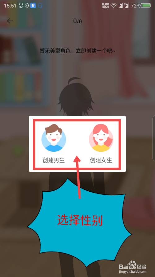 点击后,需要选择脚色的性别是男性仍是女性。如图所示