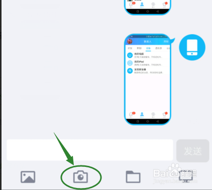 在这个界面最下面有一行小图标找到此中的小相机图标。点击这个图标是即时摄影把摄影的照片发到电脑。