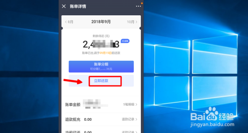 这时进入账单详情页面,可以看见相关的金额以及账单的明细,最后没有问题,点击当即还条目,起头还条目。