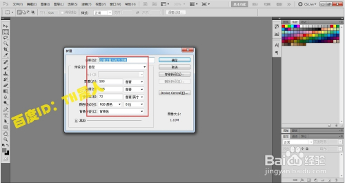 第一步,启动PS软件,利用组合键ctrl+n,新建一个文件,如图所示,文档大小没有太年夜的要求,可以参照图中500*500像素,给新建的文档定名便利我们后期查找利用,布景色设置为黑色,养当作一个好习惯给每一个文件定名。