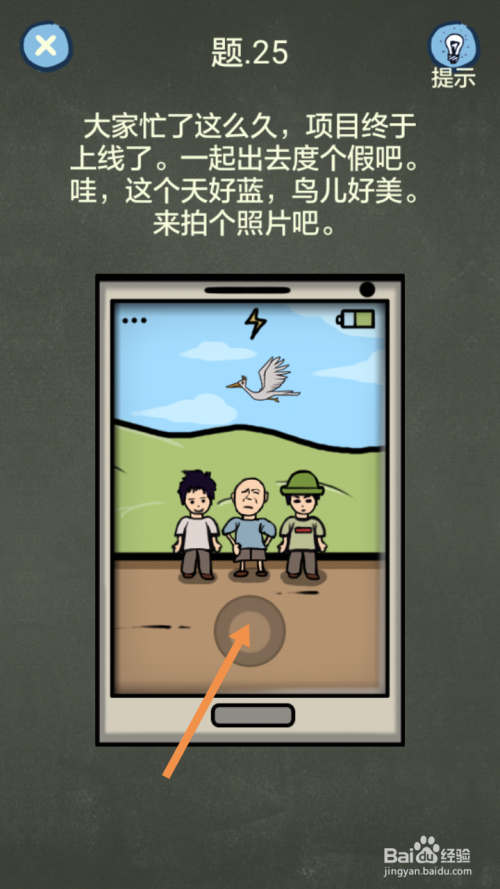 第25关屏幕往左拉,看到鸟后点击摄影就过关了。
