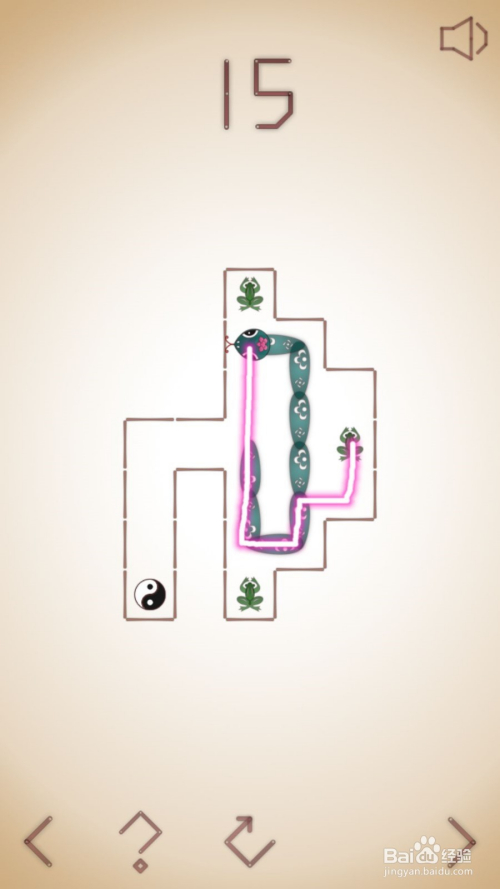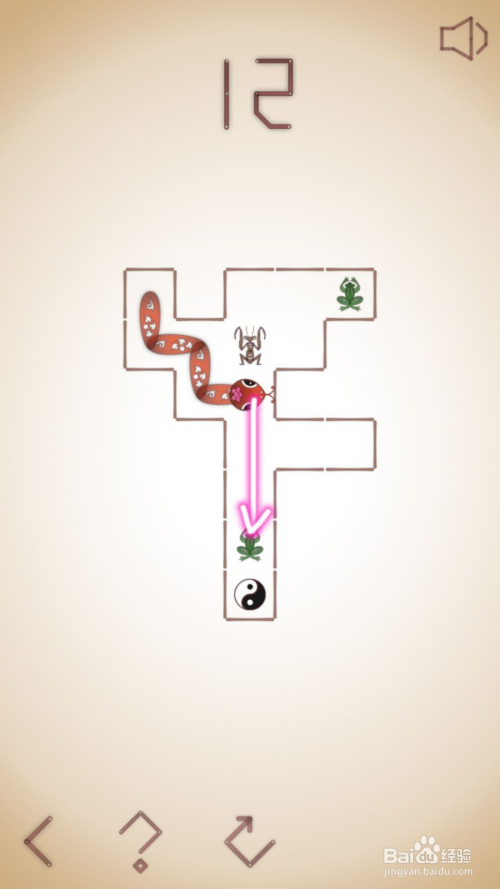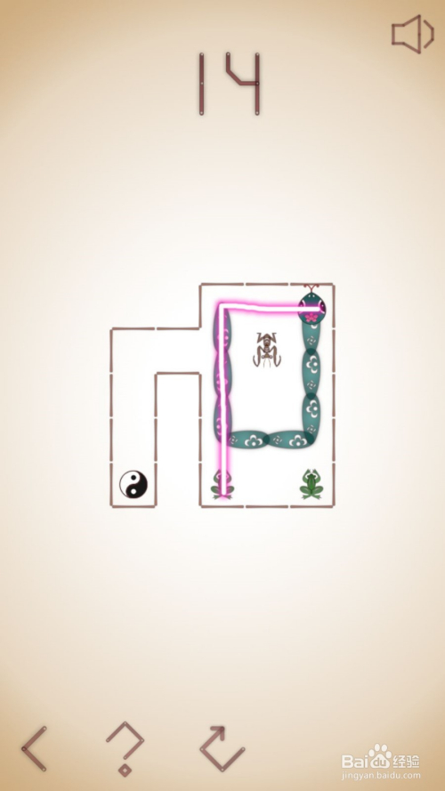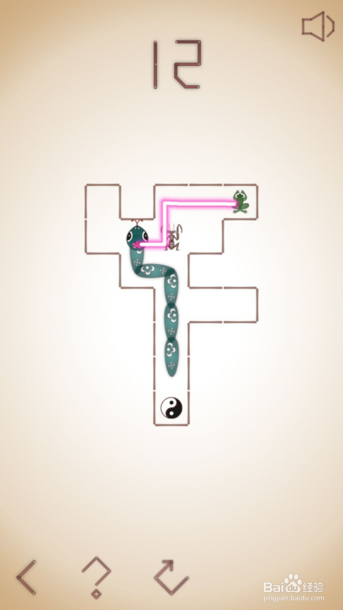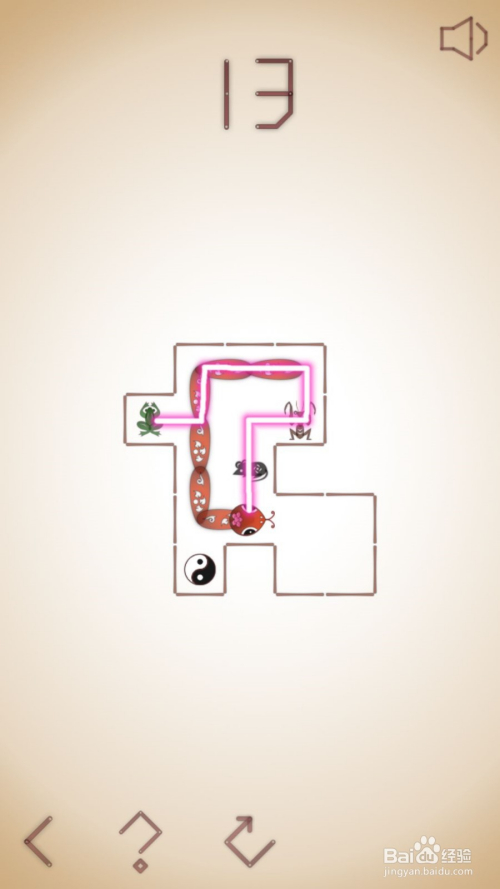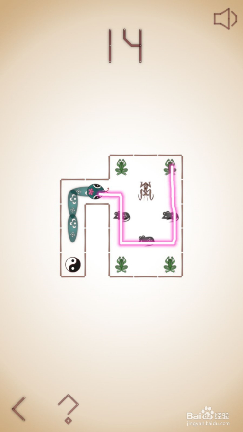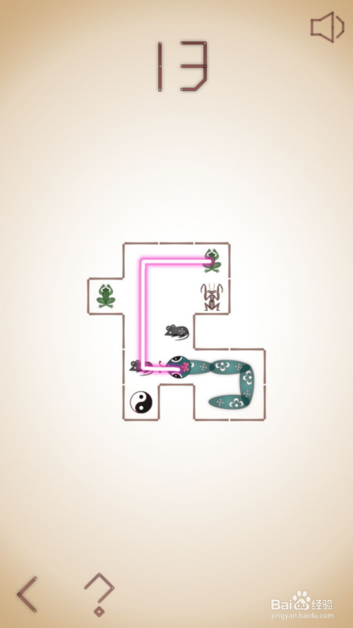 13、这关呢,需要我们先去吃左下的老鼠,之后直上到边后右拐去吃右上角青蛙,