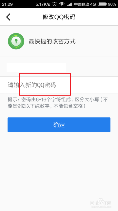在新新密码的设置页面中,我们仅仅需要输入一个新的密码即可,输入新密码之后点击确定按钮即可完当作QQ密码的点窜,十分便利。