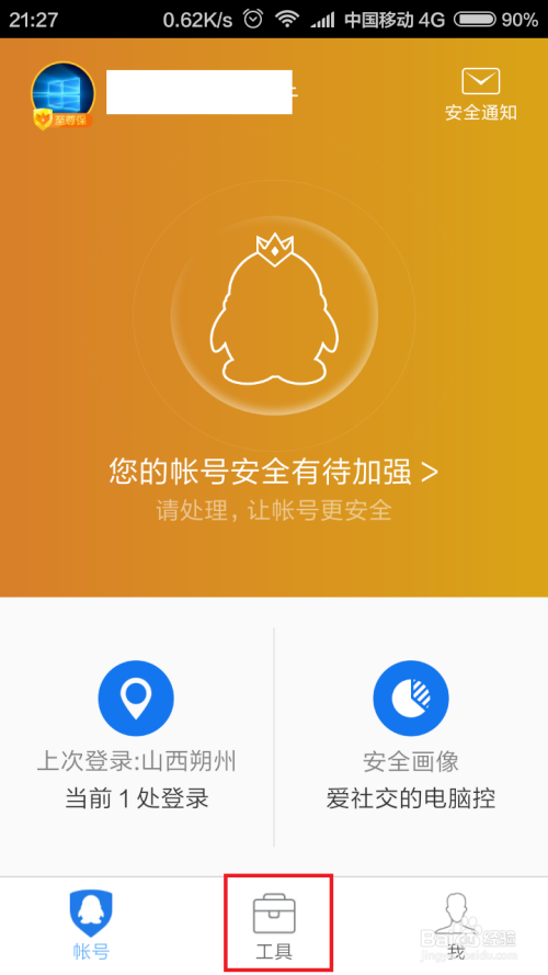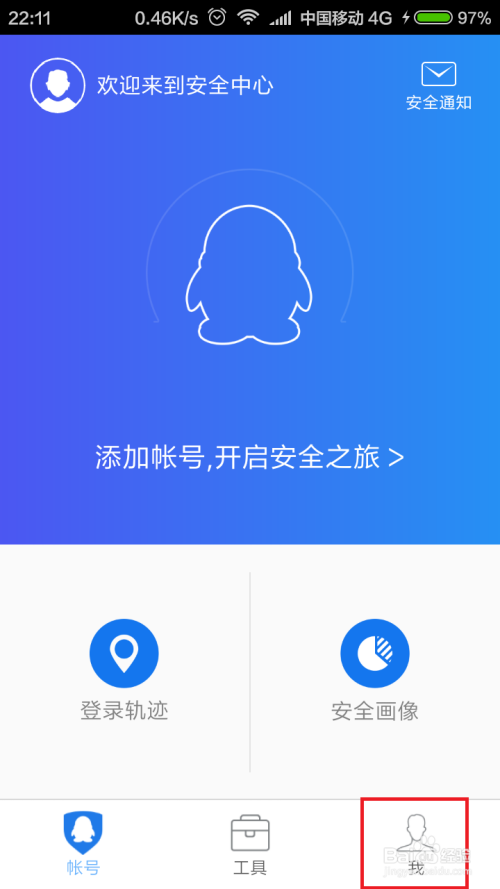 对于至尊宝用户健忘QQ密码,我们仍是只能利用QQ平安中间App来找回密码。点击进入QQ平安中间应用,点击选择“我-账号办理”选项。