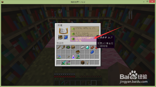 将书和青金石放到附魔台中,注重需要有品级有经验才能附魔,并且三十级可以附到更好的魔法。
