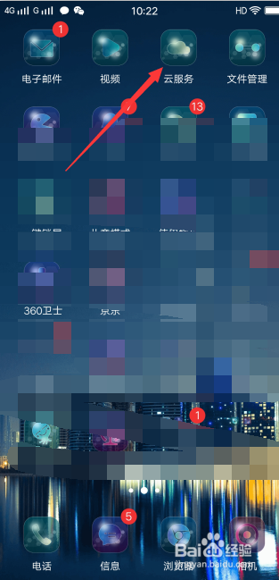首先,点击打开手机中的云办事应用,该应用是手机自带安装的。