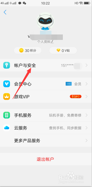 到了小我信息资料页面,点击此中的账户与平安选项。