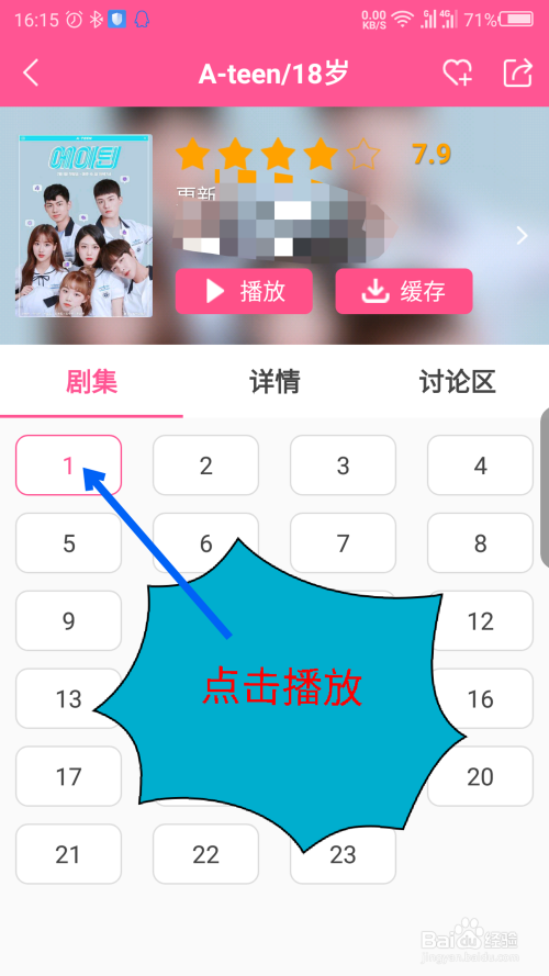 打开剧集后,点击集数播放。如图所示