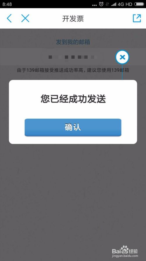 系统会提醒已经发送当作功,我们登岸适才的邮箱即可查看电子发票。
