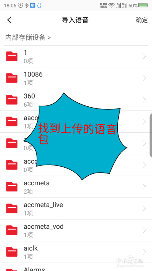 打开手机存储设备,找到要上传的语音包。如图所示